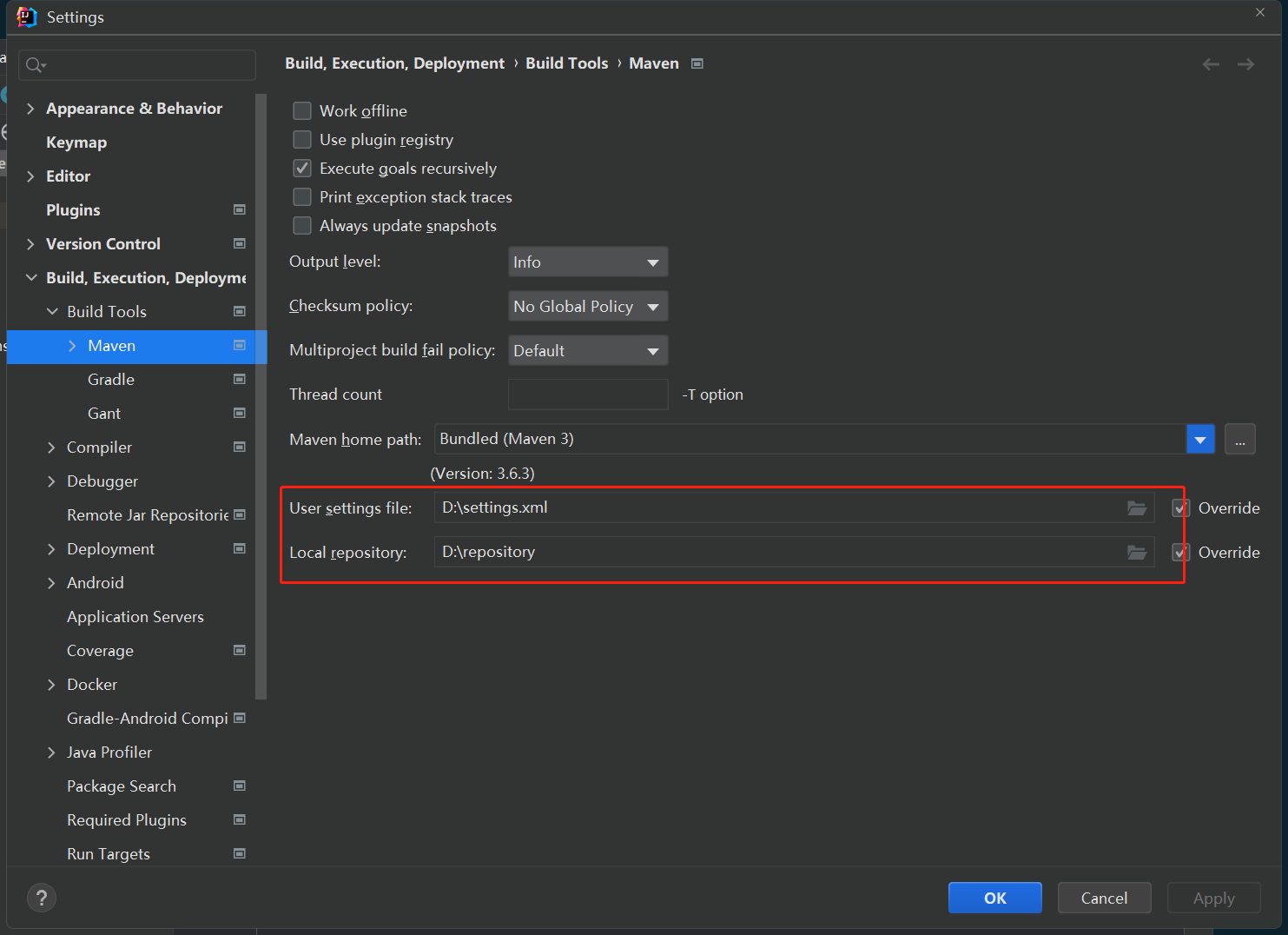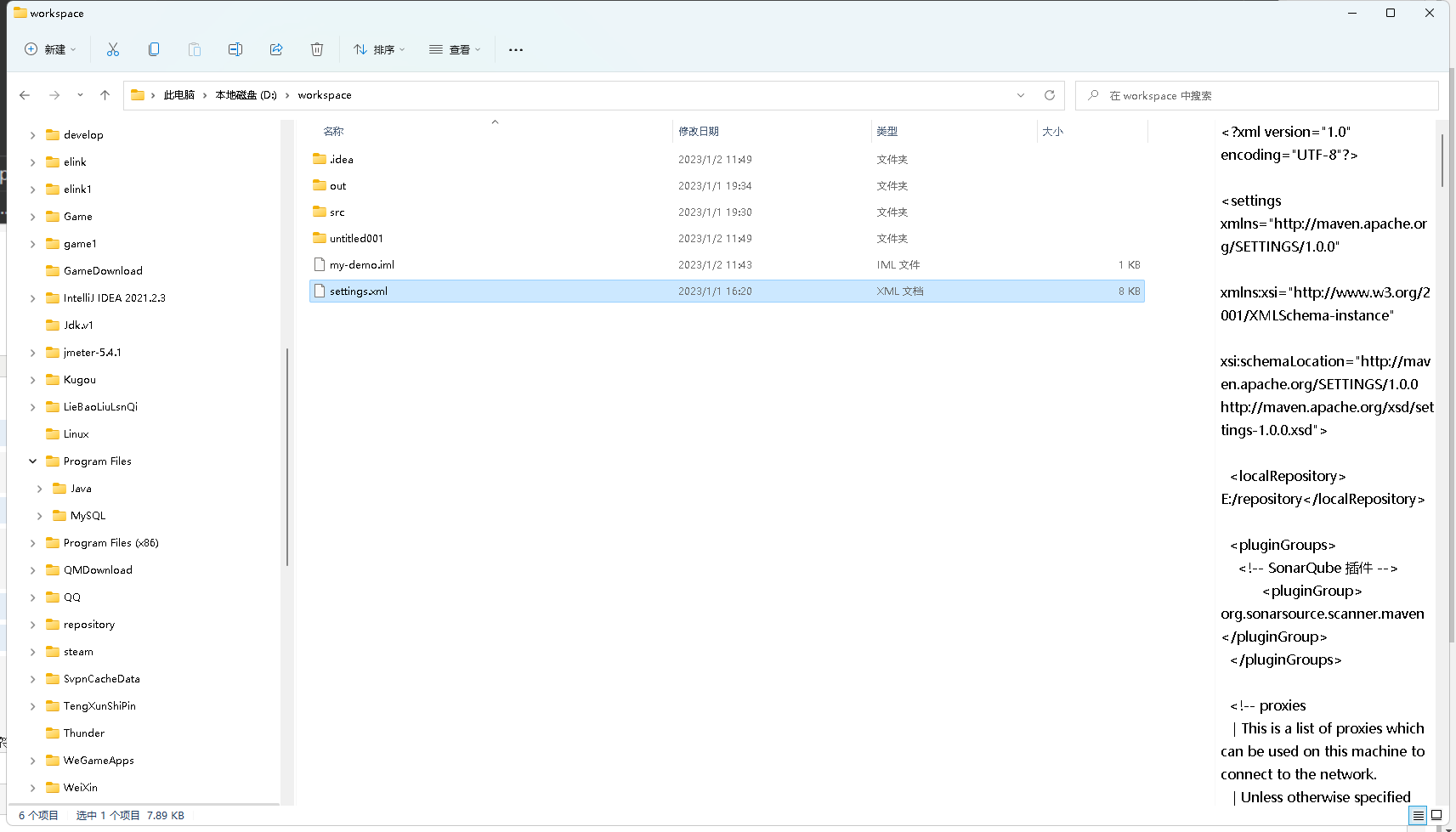 打开settings.xml文件,把路径的根目录改为自己所使用的磁盘