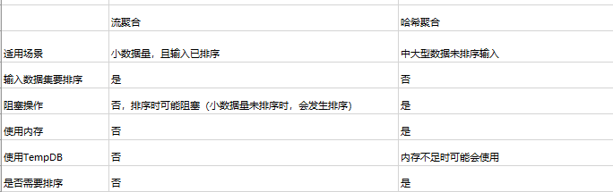 聚合运算符对应的物理运算符(流聚合,哈希聚合)