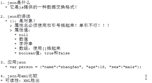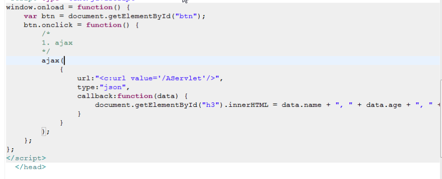 <%@ page language="java" contentType="text/html; charset=UTF-8" pageEncoding="UTF-8"%> <%@taglib prefix="c" uri="http://java.sun.com/jsp/jstl/core" %> <!DOCTYPE html PUBLIC "-//W3C//DTD HTML 4.01 Transitional//EN" "http://www.w3.org/TR/html4/loose.dtd"> <html> <head> <meta http-equiv="Content-Type" content="text/html; charset=UTF-8"> <title>Json之hello world</title> <script type="text/javascript"> //创建异步对象 function createXMLHttpRequest() { try { return new XMLHttpRequest();//大多数浏览器 } catch (e) { try { return ActvieXObject("Msxml2.XMLHTTP");//IE6.0 } catch (e) { try { return ActvieObject("Microsoft.XMLHTTP");//IE5.5及更早 } catch (e) { alert("你的浏览器暂不能支持此功能!"); throw e; } } } } window.onload = function(){ var btn = document.getElementById("btn"); btn.onclick = function(){ var xmlHttp = createXMLHttpRequest(); xmlHttp.open("GET","<c:url value='/JsonServlet'/>",true); xmlHttp.send(null); xmlHttp.onreadystatechange = function(){ //双重判断 if(xmlHttp.readyState == 4 && xmlHttp.status == 200){ var text = xmlHttp.responseText;//它是一个json串 //执行json串 var person = eval("("+text+")"); var s = person.name+","+person.age+","+person.sex; document.getElementById("h3").innerHTML = s; } }; }; }; </script> </head> <body> <%--点击按钮之后显示json内容 --%> <button id="btn">点击按钮</button> <h1>JSON之HELLO WORLD!</h1> <h3 id="h3"></h3> </body> </html>