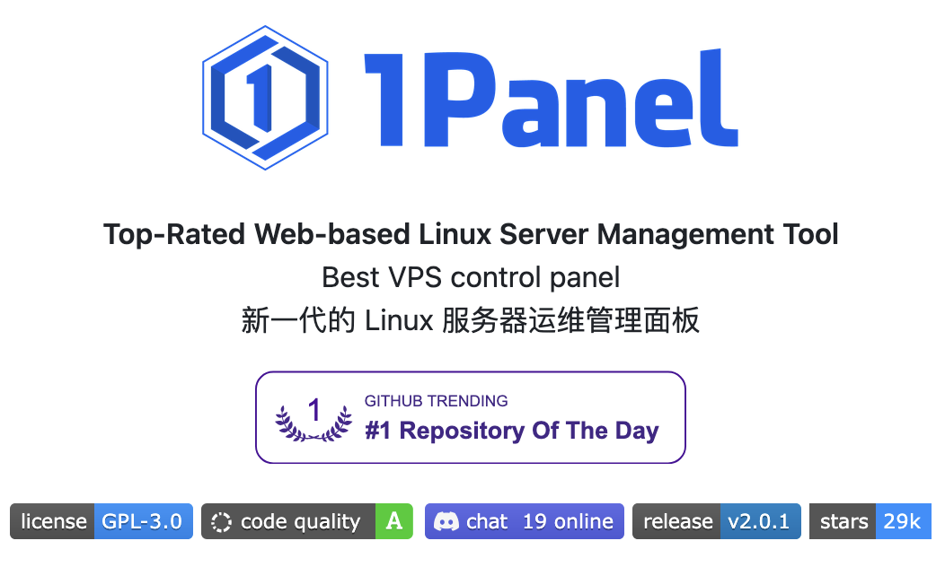 GitHub 仓库:https://github.com/1Panel-dev/1Panel ,1Panel 官网:https://1panel.cn ,在线体验:https://demo.1panel.cn
