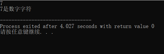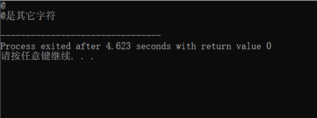 //ex4.cpp //判断字符类型 #include<stdio.h> int main(){ char x; x=getchar(); if(x>=48&&x<=57) printf("%c是数字字符\n",x); else if(x>='a'&&x<='z'||x>='A'&&x<='Z') printf("%c是英文字母\n",x); else printf("%c是其它字符\n",x); return 0; }