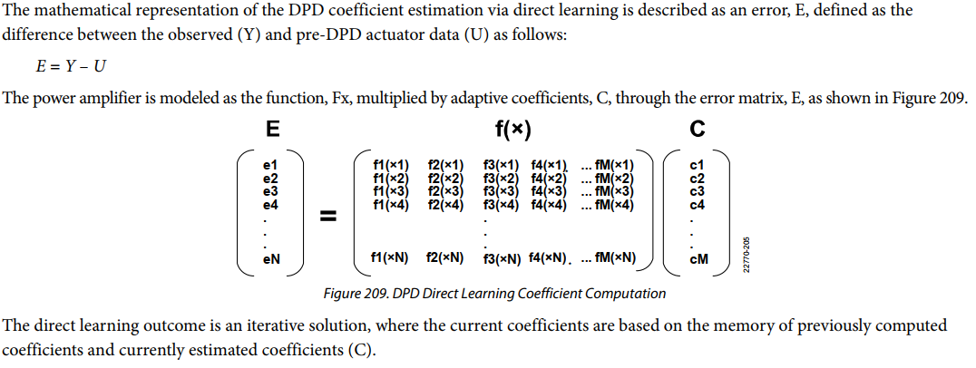 DPD间接学习算法是时间高效的,因为它在一次更新中通过反演估计系数。当系统需要更快的自适应响应时,首选采用DPD间接学习算法;
