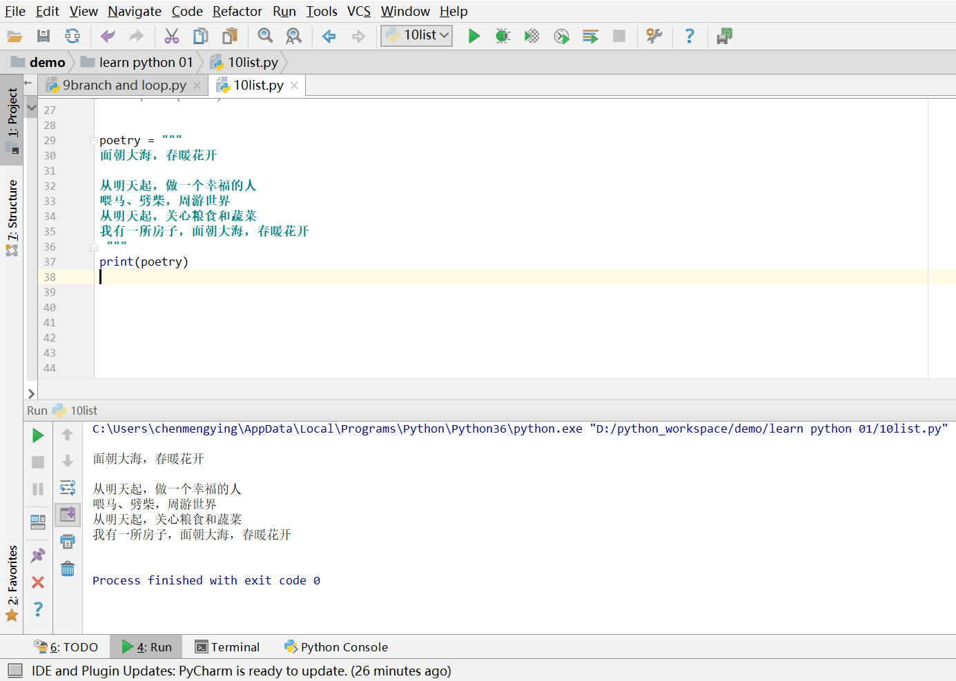 注意事项:反斜杠\不能用在字符串末尾,代表这事儿还没完,末尾有了\可以打回车不执行代码