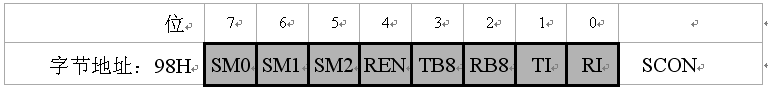 SCON是一个特殊功能寄存器,用以设定串行口的工作方式、接收/发送控制以及设置状态标志