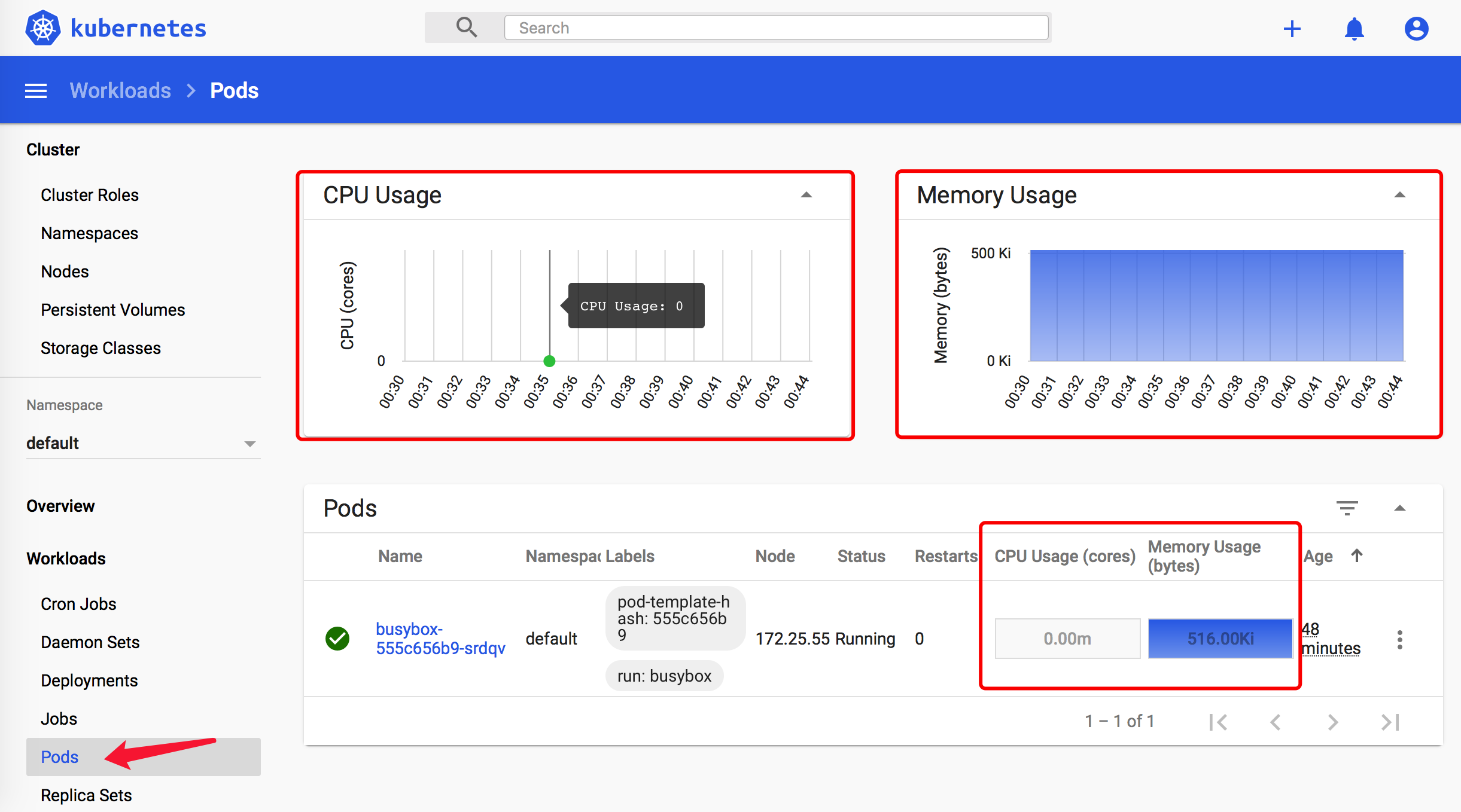 注:此时获取不到cpu和内存信息,因为没有安装metrics-server