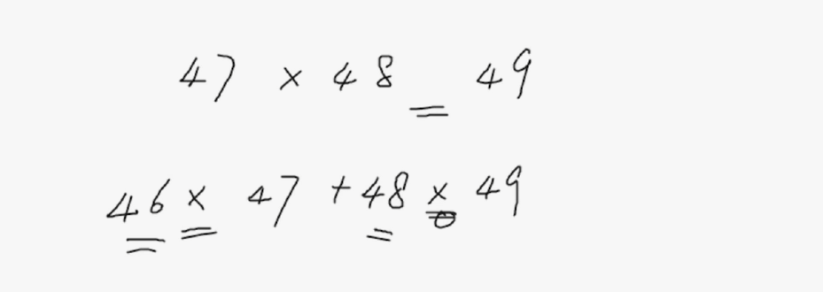 首先确定第一个乘号最终只能放到46的位置,第二个乘号可以放到48的位置