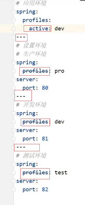 - 多个环境配置用---隔开,怎么引用它们呢,用profiles给它们起个名字