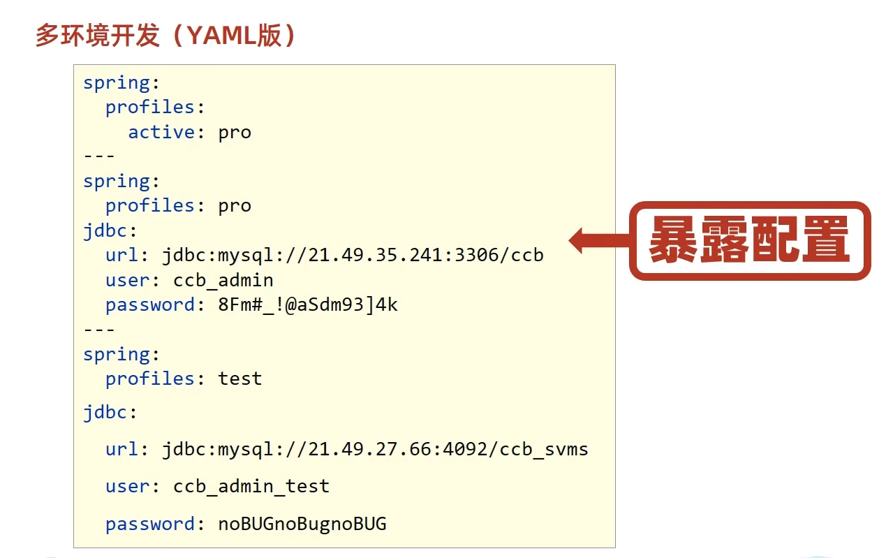 但是呢它有个问题,多个环境放在一起的话,会暴露配置信息。