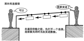 发送数据之前,需要在收发主机之间建立一条通信线路,在通信传输前后,专门进行建立和断开连接的处理,如果与对端之间无法通信,可避免发送无谓的数据。