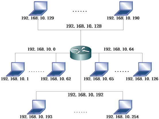 A类网络(1-126):缺省子网掩码:255.0.0.0