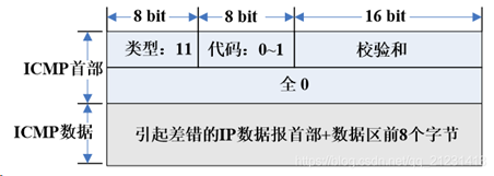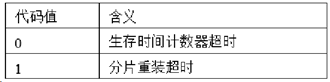 数据报超时:数据报超时可以用来防止数据报在网络中被循环的路由,在IP首部中都有一个生存时间(TTL)字段,数据报每被转发一次,TTL的值便会减1,当TTL的值被减为0时,数据报会被网络丢弃,同时一个ICMP数据报超时报文会被返回给源主机。此外在分片重装时,也用到了ICMP超时报文,若某个数据报在重装过程中其重装时间超时,而数据分片还没有全部到达,此时与该数据报所有相关的分片将被删除,同时,一个ICMP超时报文将被返回给源主机。常用数据报超时报文格式及代码字段常用取值如下: