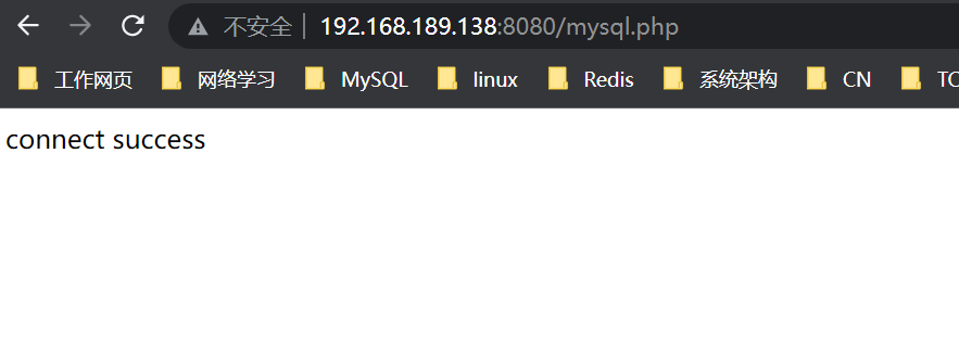 1 <?php 2 // 创建连接 3 $conn = new mysqli('mysql','root','asd123456'); 4 // 测试连接 5 if($conn->connect_error){ 6 die("连接失败,错误:" . $conn->connect_error); 7 } 8 echo "connect success";