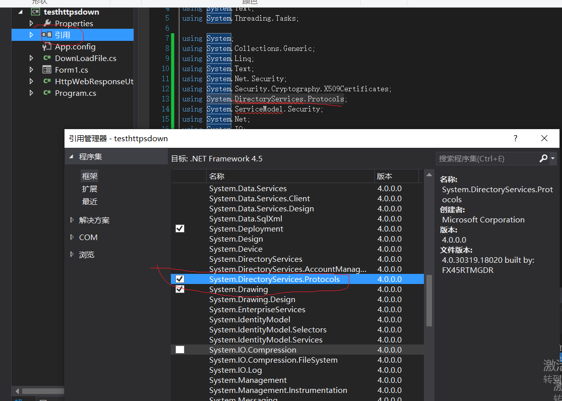 c# 动态库--未找到类型或引用System.DirectoryServices.Protocols
