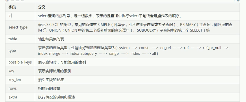查询效率从上到下依次降低,一般来说我们需要保证查询至少达到range级别,最好达到ref