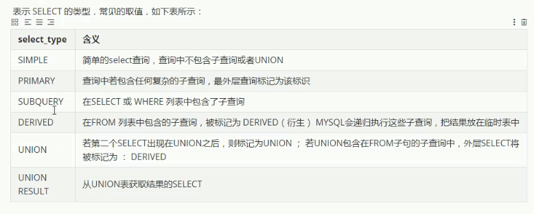 id字段是select查询的序列号,是一组数字,表示的是查询中执行select子句或者是操作表的顺序。id情况有三种: