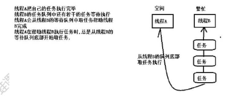 把一个大任务调用fork()方法分解为若干小的任务,把小任务的处理结果进行join()合并为大任务的结果