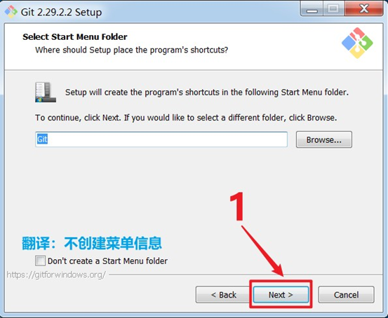 5.这里是询问你是否创建开始菜单,并设置名称。我这里不改变文本内容,直接 “Next” 下一步。