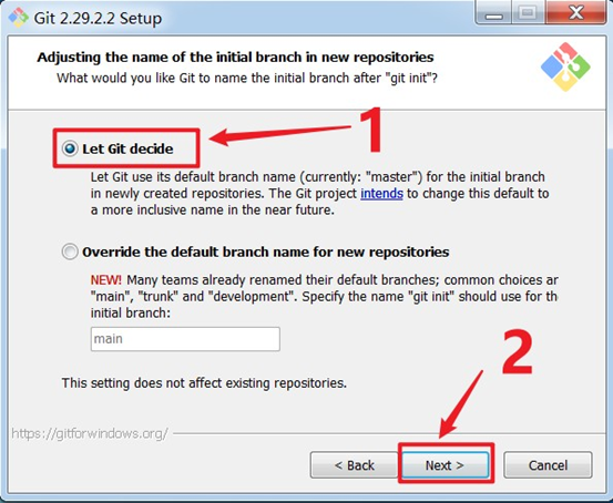 2)Override the default branch name for new repositories(重写新存储库的默认分支名称)