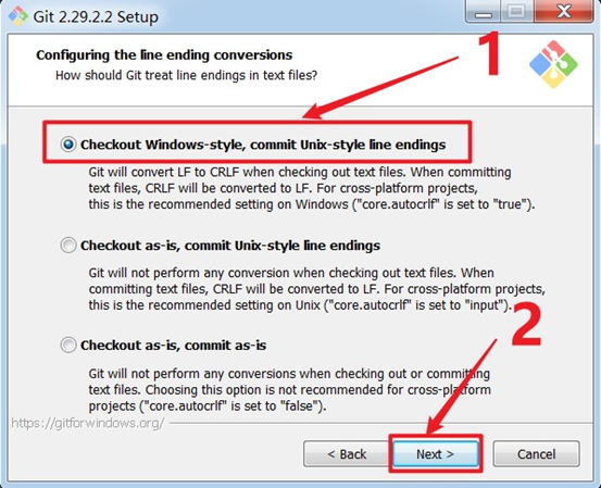 10. 配置行尾转换,我们选择第一项(Windows推荐),接着 “Next” 下一步。
