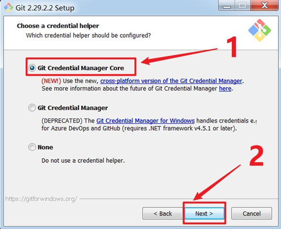 这里我们选择第一项,Git凭据管理器核心,然后 “Next”