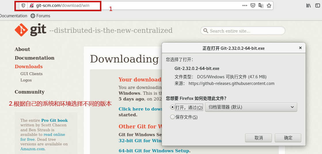 1.2然后找到下载页面: http://git-scm.com/downloads