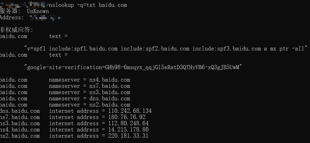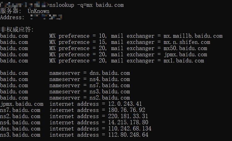 非交互模式则是后面跟上查询的域名或者 IP 地址按回车。