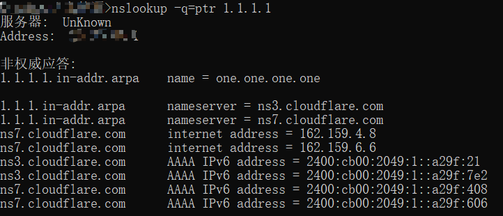 它有两种模式: 交互 & 非交互,进入交互模式在命令行界面直接输入nslookup按回车,