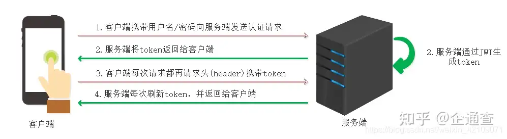- Token是在服务端产生的。如果前端使用用户名/密码向服务端请求认证,服务端认证成功,那么在服务端会返回Token给前端。前端可以在每次请求的时候带上Token证明自己的合法地位。如果这个Token在服务端持久化(比如存入数据库),那它就是一个永久的身份令牌。