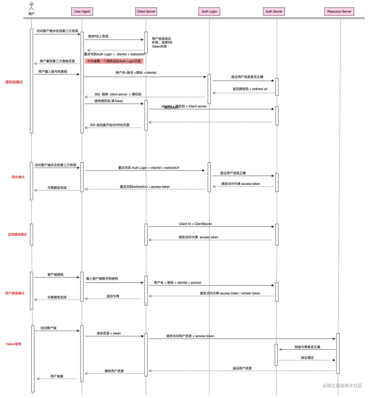 下面给大家介绍一下关于OAuth 2.0实现的4种方式。 四种授权模式时序图如下: