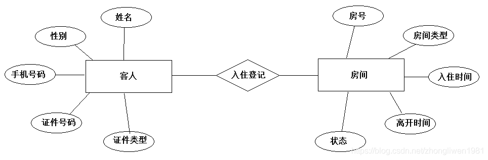 房间:房号、房间类型(单人房、双人房、豪华房等等)、入住时间、离开时间、房间状态(已入住、未入住)…