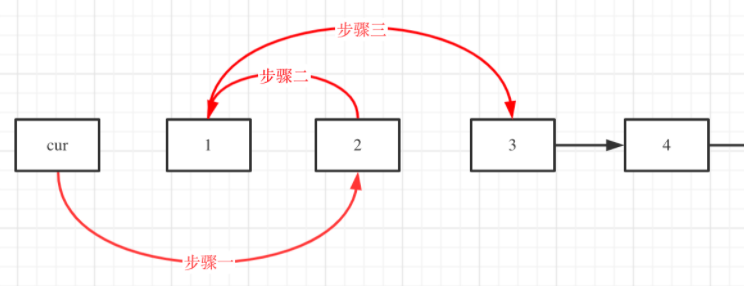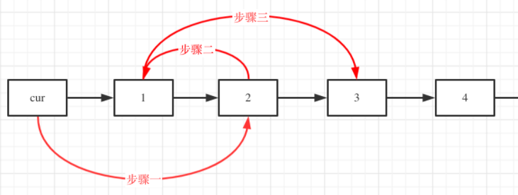 初始时,cur指向虚拟头结点,然后进行如下三步: