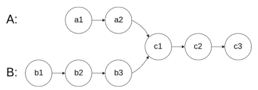 图示两个链表在节点 c1 开始相交: