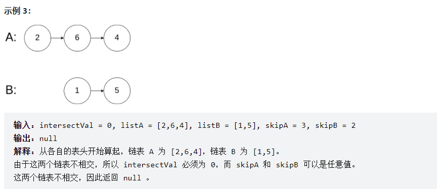 题目:给你两个单链表的头节点 headA 和 headB ,请你找出并返回两个单链表相交的起始节点。如果两个链表没有交点,返回 null 。