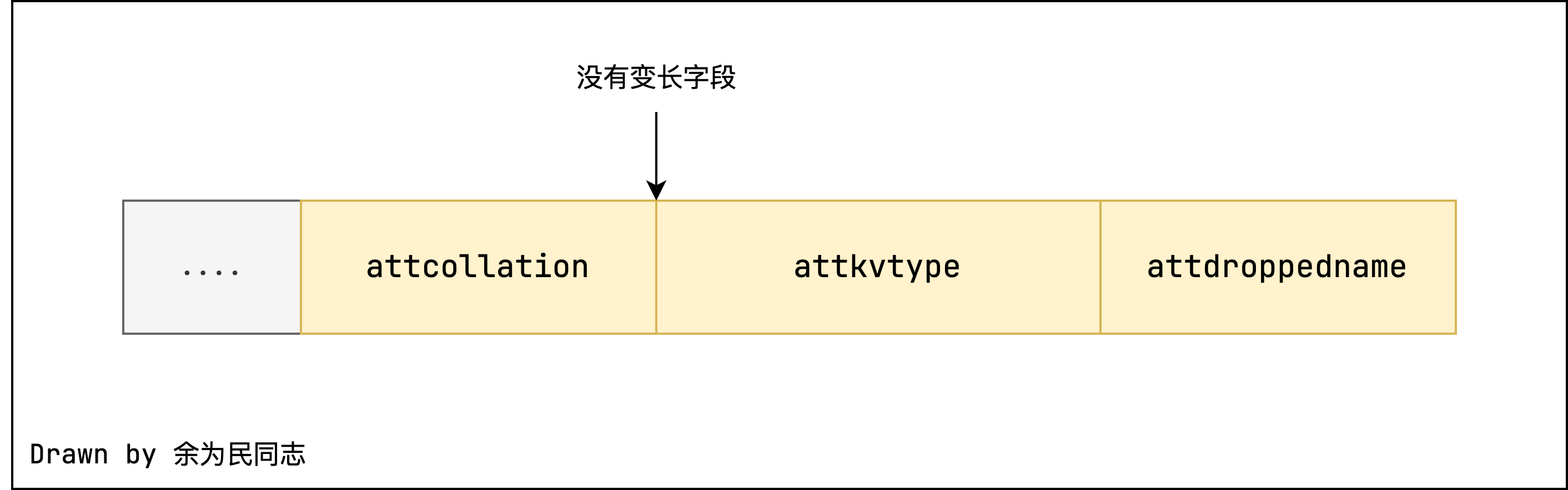 所以如图所示该结构体在编译以及运行过程中的结构如下所示,但是在实际中创建该tuple的长度却不是按结构体的大小的来的,变长字段的内存长度是动态申请的。