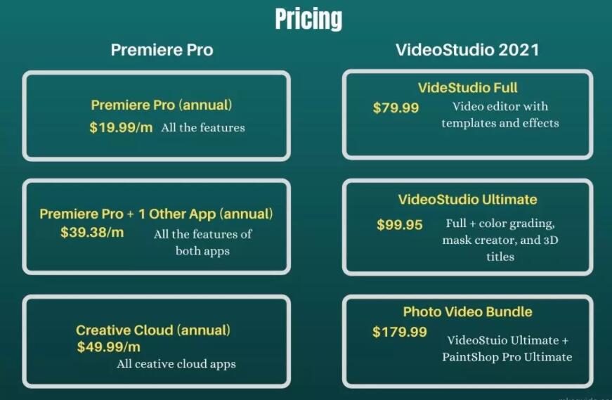 定价各有利弊。使用Premiere Pro,您需要支付月费,短期内可能会觉得划算,但从长远来看,它’太贵了但从另外一面来看,你可以得到更新并使用新功能。