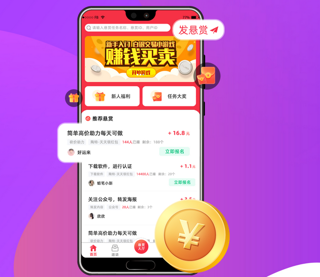 威客任务系统源码可以发布各种雇主需求任务,该威客系统支持发布任务和推广提成,简单清爽的UI移动任务界面,支持雇主移入和发布任务,用户是雇主,可以自己做任务。