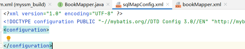 四:创建Mybits的核心文件sqlMapConfig以及映射文件bookMapper.xml,创建dao的接口BookMapper,导入好头文件,但是还没有写具体的代码