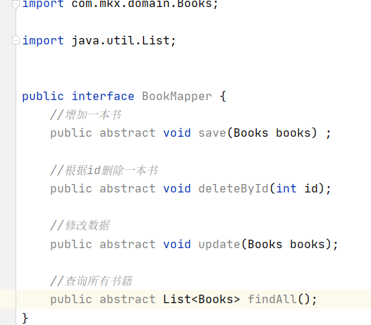 五:在BookMapper接口中 书写 增删改查 抽象方法