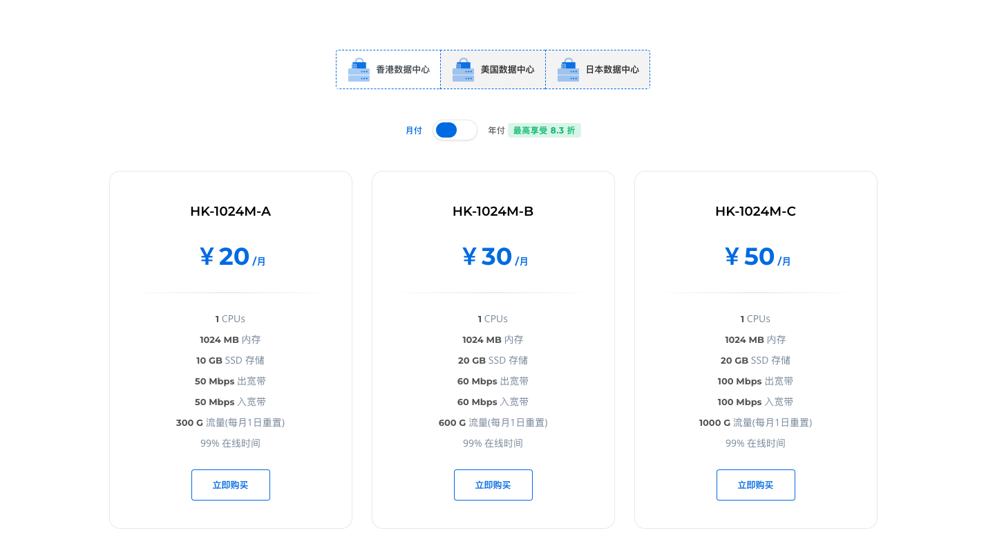 价格低,有优惠的情况下可以低于20元/月,一年低于240元;长期运营12年,网速好,推荐香港和韩国的机房