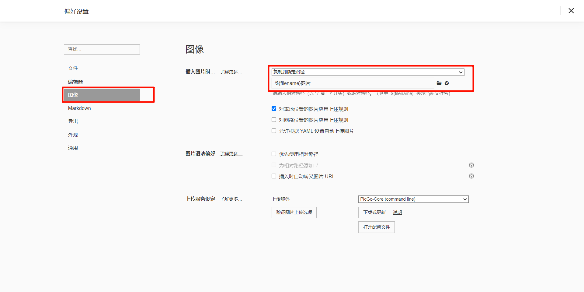 偏好设置 -> 图像 -> 选择“复制到指定路径” ,在下方填写自定义路径