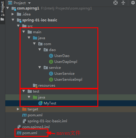 演示,创建工程名为spring-01-ioc-basic,工程结构如下: