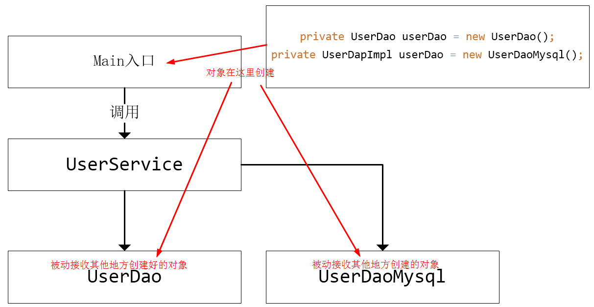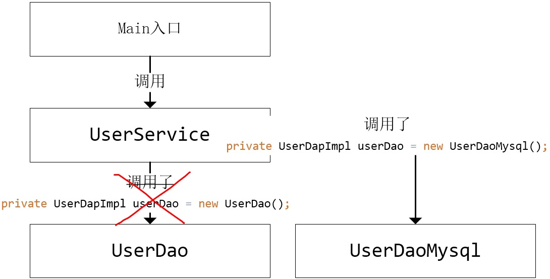 在dao的package增加UserDaoMysql类,那么需要在两处改动