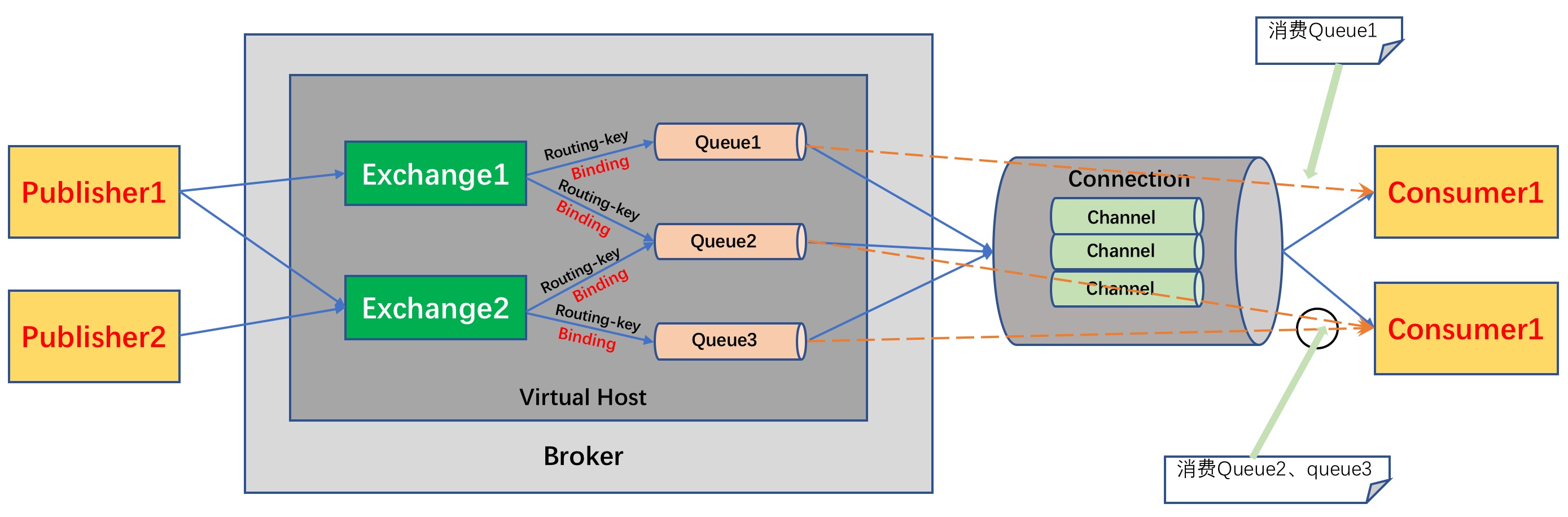 * 使用fanout交换器的时候,可以在consumer中省略routing-key的配置。