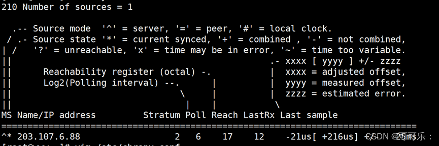 1.配置chrony, 使其从其他NTP服务器去同步时间 (配置一个aliyun可用,再配置一个不可用的)