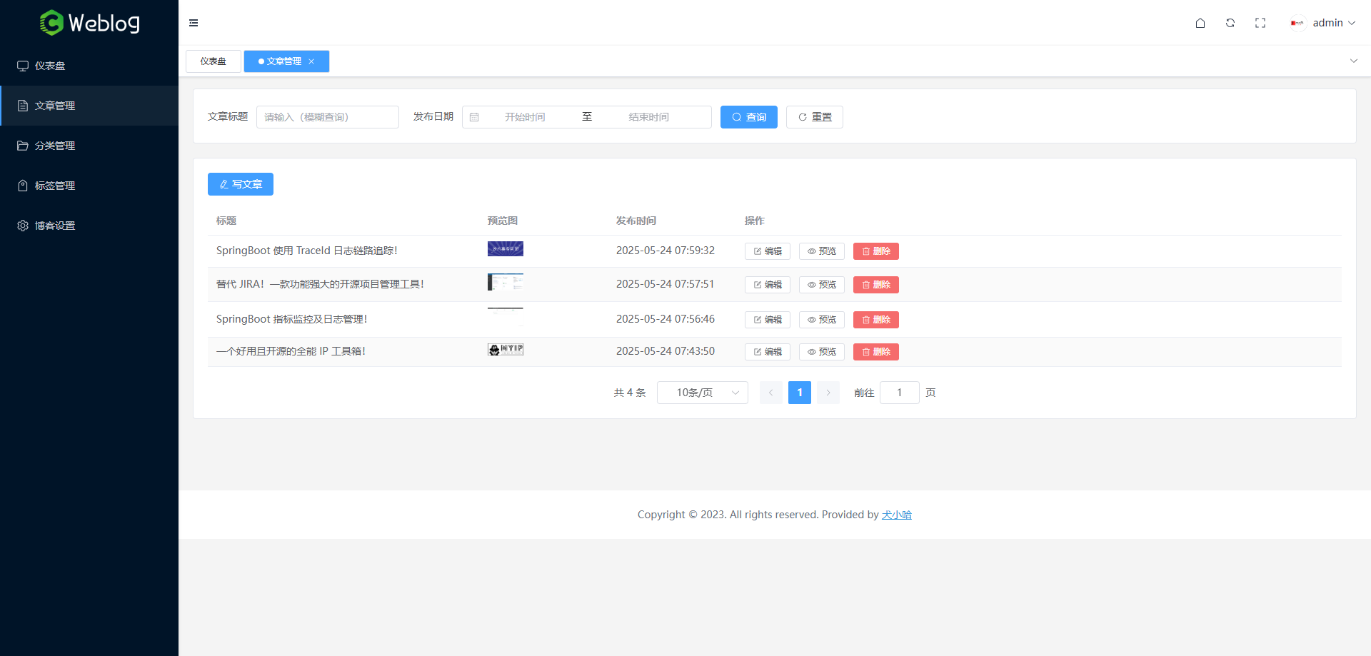- 支持文章分类、文章标签,方便精准定位所需博客文章