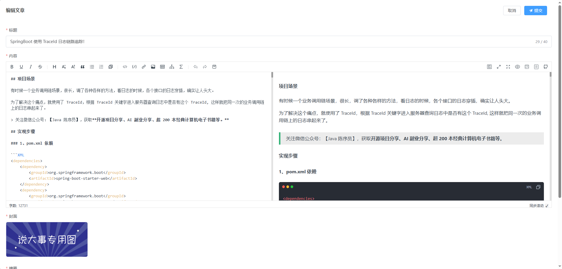 - 支持 Markdown 格式编辑、预览、发布博客文章