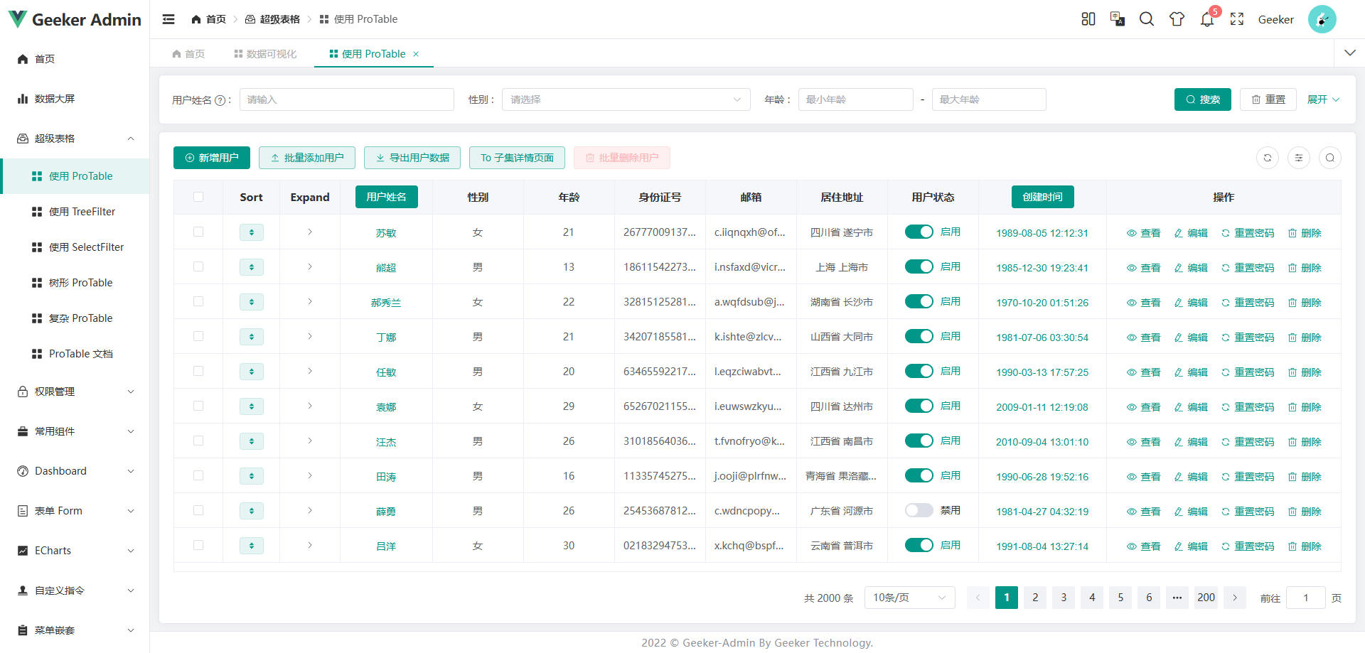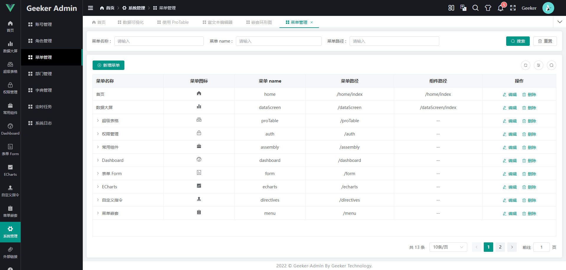 Geeker-Admin —— 一款基于 Vue3.4、TypeScript、Vite5、Pinia、Element-Plus 开源的后台管理框架,封装了一些常用组件、Hooks、指令、动态路由、按钮级别权限控制等功能。