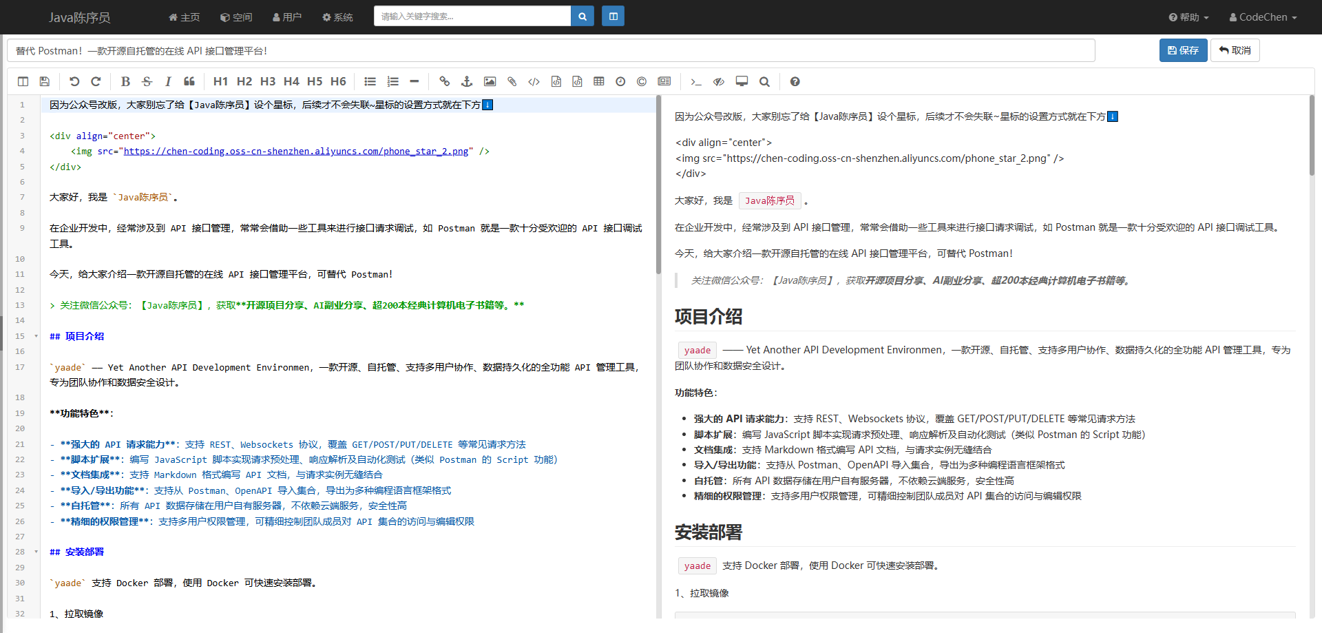 - Markdown 支持:完全支持 Markdown 语法写作,同时支持上传附件
