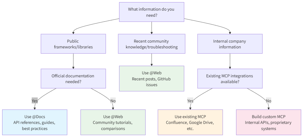 @Docs 将 Cursor 连接到来自常用工具和框架的官方文档,当需要以下内容的最新权威信息时,请使用它: