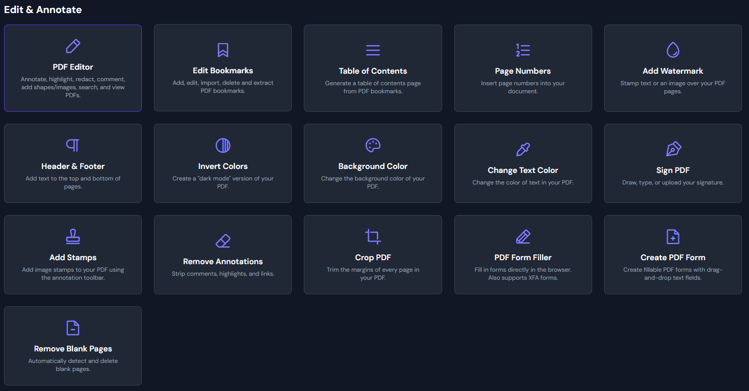 - 高性能:采用现代网络技术构建,速度快、效率高,即使是大型 PDF 文件也能轻松处理